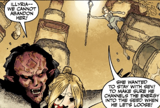 As she reaches up however, she finds her path blocked by Eldre Koh and D’Hoffryn himself, the only survivors of Maloker’s rampage of rebirth. “You hurt the Slayer,” Koh snarls at her, his light blades fizzing to life in his hands. D’Hoffryn sneers and actually looks her up and down with disgust. “And made yourself an aberration.”