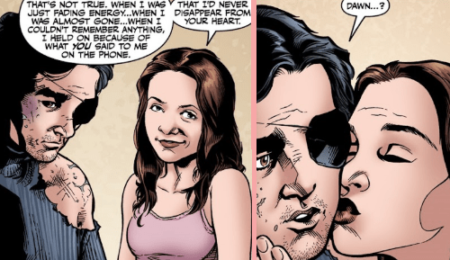 She rises up onto tip toes and kisses him, gently, on the cheek. As she lets go, Xander looks at her for a moment, puzzlement on his features. “Dawn? Wait, Dawn… how do you know?”