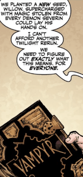 Willow nods, a grin on her face. “Magic? Yes. It’s back. Severin and Illyria did it. They gave the Seed the power it needed to take root.”