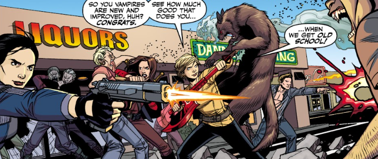“See how much good that does you when we go old school!” She yells louder as her family, now bolstered by Faith and Kennedy, race into battle at her side, reunited and stronger for it. Xander and Andrew are throwing Molotov cocktails at the vampires, whilst Giles has noticed their key differences to their usual foes. He yells at his allies over the screaming.