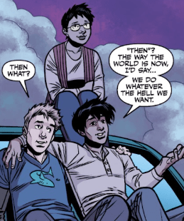 Devon looks at his boyfriend. “Then what?” Billy grins. “‘Then’? The way the world is now, I’d say… we do whatever the Hell we want.”