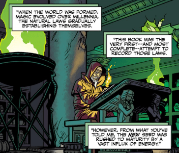 “When the world was formed, magic evolved over millennia, the natural laws gradually establishing themselves. This book was the very first – and most complete – attempt to record those laws. However, from what you’ve told me, the new Seed was rushed to maturity by a vast influx of energy.”