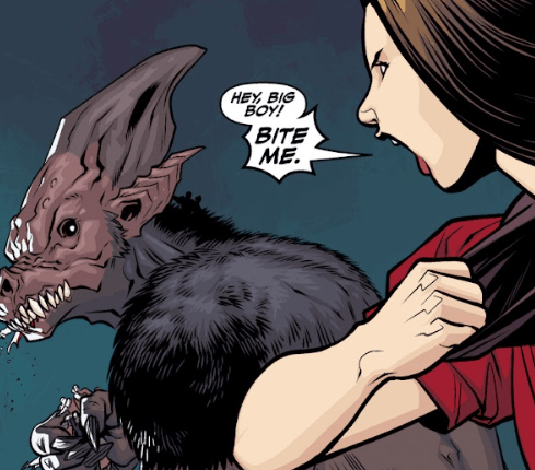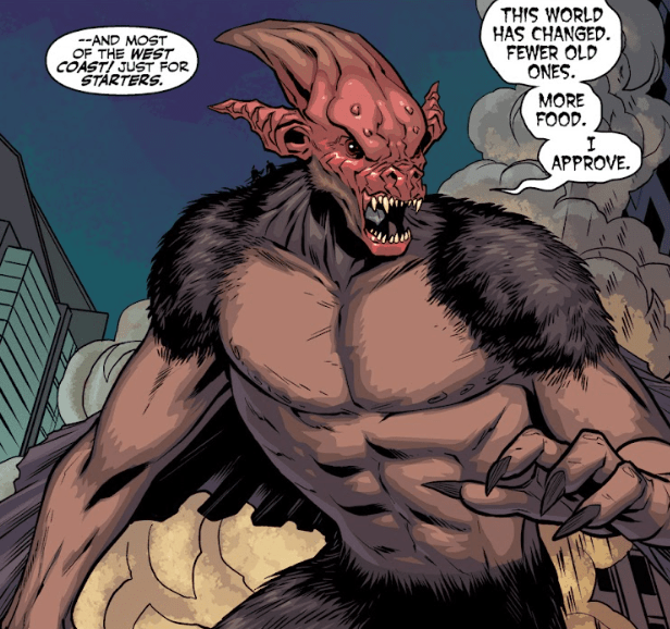 “Hey, big boy… Bite me!” Dawn yells at that moment, punching the Old One, but he takes the blow and turns to her.