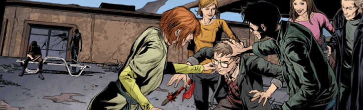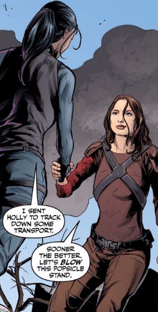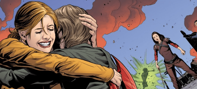 In Santa Rosita, Faith sits away from Giles and Buffy, watching as Xander and Spike greet their old friend back into the family. Despite being there, Faith can never feel like she’s a part of it. Kennedy picks up on her self-isolation and walks over to Faith. She knows what it’s like to try and insert yourself into that tight circle, and has a suggestion for Faith, to move on from it.