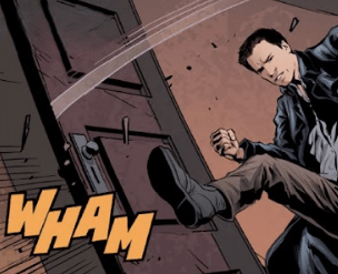 After searching various dive bars, drug dens and talking to mystical residents for most of the night, Angel finally finds a lead that could help. He finds an old address, abandoned, and hopes for the best as he kicks the door in. “All right you ugly, pixie, sons of…”