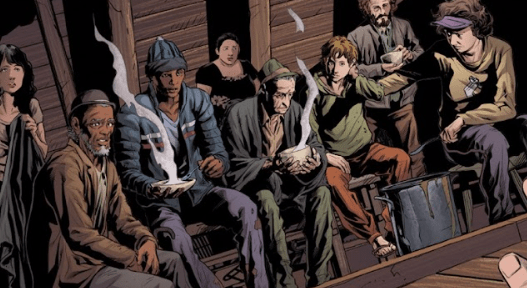 Angel takes in the group, watches as one hands out bits of food and drink. “Who are these people?”