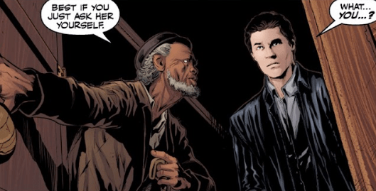In London, an older gentleman with white hair gets up from his seat, one hand extended, the other relying on a cane. He approaches the vampire with a smile on his face. “Hello Angel. We’ve been expecting you. My name is Kent. Welcome.”
