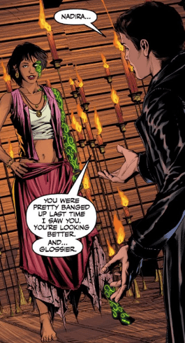 He chooses his words carefully. After all, the last time he saw this Slayer, she wasn’t exactly his number one fan. “Nadira… You were pretty banged up last time I saw you. You’re looking better. And glossier.”