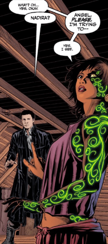 But he’s shushed by Nadira, raising her hand to stop his words. It appears to Angel that she’s whispering. No, not just whispering… she’s talking.