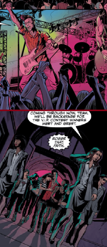 Halfway across the world, in a dirty and crowded nightclub called Seaside Hall, Billy Rage ‘sings’ onstage. Faith doesn’t consider it music, but that may be because she doesn’t understand much of the slang being used. As soon as the performance is over, she moves to escort her client from the stage and back into the VIP lounge. She keeps her partner in this venture, a fellow Slayer named Mai, informed that she’s moving the group back now, including a girl who’s being pawed by the rock star.