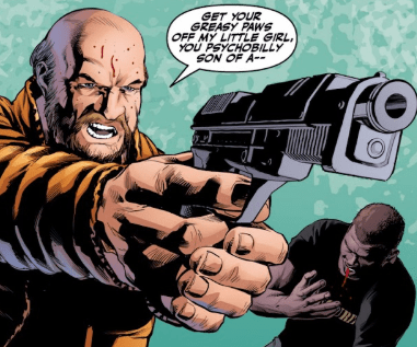 Then Peggy’s father is in the room, and, one way or another, has a gun in his hand, now pointed at the rock star. “Get your greasy paws off my little girl. You psychobilly son of a…”