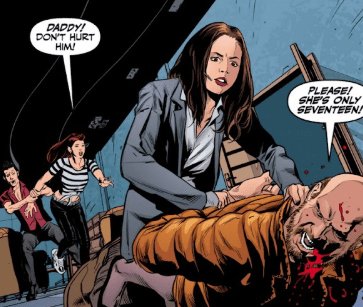 As Faith wrestles the gun from the father’s grasp, she turns him around, twists his fingers around his back and lowers him to the ground. She’s startled when he speaks directly to her. “Please! She’s only seventeen.”