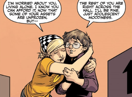 Buffy hesitates. “I’m worried about you living alone. I know you can afford it, now that some of your assets are unfrozen, but…”
