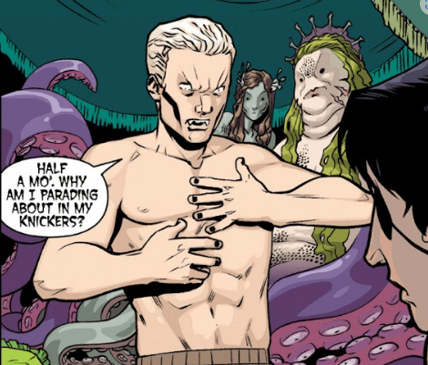 Spike rolls his eyes. “Whilst I shall stand here awkwardly, feeling vaguely uncomfortable and wondering why we’re all speaking in exposition.”