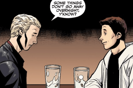Then, quieter: “But listen, mate. What happened with you and Dawn… She really did love you. Ain’t nobody’s fault her emotions got rebooted to factory settings. It was an error in magic, innit? If you wrote that it got fixed, you’d just be setting things right. Giving her back what she lost.”