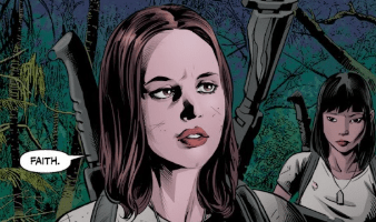 As Sam starts to walk, ahead of her, Faith slowly brings up the rear. When she finally feels right, she speaks. “And since we have a few moments alone, maybe we should talk.”