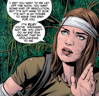 “I get you want to be let off the hook. You want some kind of absolution. But it’s not mine to give. It’s not in my power to make this easy for you. It’s Riley you’ve wronged, not me. You can’t do an end run around that by apologising to me.”