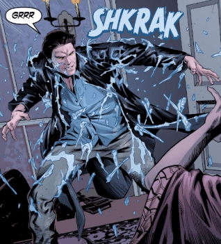 His eyes flash open now. He’s beginning to come around. He locks eyes with his rescuer. “Wait… Do I… Do I know..?”