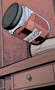 She goes falling backwards, unable to catch herself, and hits the nearest table. The table wobbles and it’s contents head for the ground. One of the items is the jar containing what’s left of Warren Mears.