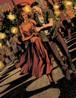 They fight now, through the throng of vampires. Riley finds the time to quip at Faith, fighting back to back with her. “Still glad you came to rescue me?”