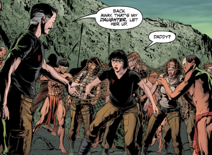 ‘”Back away. That’s my daughter. Let her up.” The tribal vampires follow the order of Walter Zane, head of Zane Pharmaceuticals – and one of the missing men they were sent to find. They release Reese, cut the rope, but hold the others fast, ensuring Faith and the troop remain imprisoned.