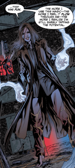 She looks down at Angel, grinning wildly. “I’ve got to be honest, that was fun. The more I use this magic, the more I feel it flow through me, the more I realise I’m still barely tapping the potential. Impressed, Angel? Silly that I ever thought I needed your help.” Her eyes are still jet black.