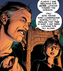 He makes a fist with his hands, looks straight into the fire pit as he speaks, in almost reverent tones. “Always, I was reaching for more, looking toward the horizon. Only now, having shed cumbersome mortality, do I realise this is what I had been looking for all along.”