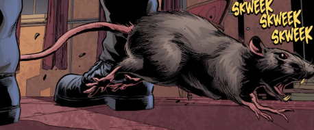 Amy is transformed into a rat by Nadira. She did this to herself, and got stuck, in Gingerbread. Willow finally de-ratted her in Smashed. Since Amy didn’t cast the spell this time, she’s trapped in this form again, and escapes into the night. This is the character’s final appearance. She first appeared way back in Buffy‘s season one episode Witch.