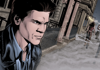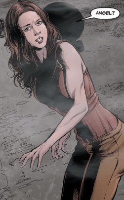 As he turns, he catches sight of a woman, walking down the street. She has her back to Angel, but there’s something about her stance, her walk, her hair that seems familiar. Chasing a hunch, Angel takes off, quickly calling after the stranger and running to catch up with her. “Hey” Excuse me, miss! Ma’am!”