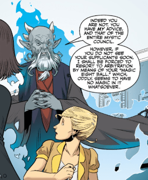 “Indeed you are not. You have my advice and that of the entire Mystic Council. However, if you do not see your supplicants soon, I shall be forced to resort to arbitration by means of your ‘magic eight ball,’ which oddly, seems to have no magic in it whatsoever.”