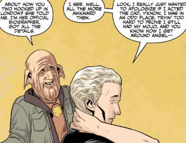 The newcomer is Harmony Kendall, former classmate and current vampire celebrity. As ever, she’s being trailed by her assistant, former Sunnydale resident, Clem.