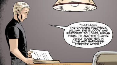 “‘Fulfilling the Shanshu Prophecy, William the Bloody was restored to living, human form. He and the Slayer dwelt together in love and happiness, forever after.’”