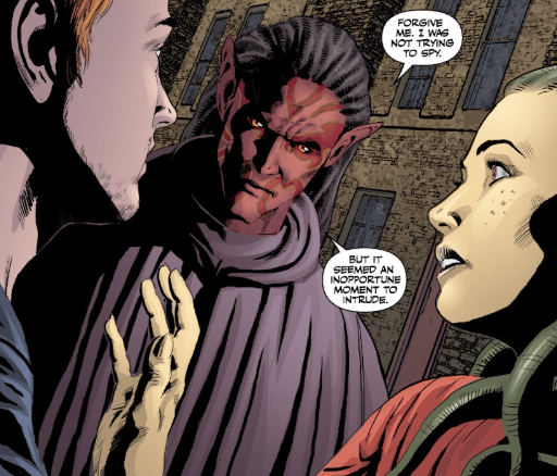 The demon looks sullen now, once again looking away from Angel. But the vampire is nothing if not persistent. “Answer me this, Koh. What if you can somehow ask Illyria your questions, and she tells you what you want to know, and you do finally get your revenge? Then what? What will you do when you don’t have revenge guiding you anymore?”