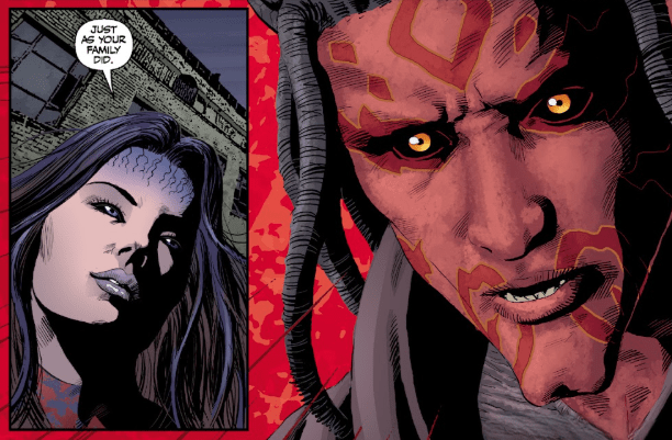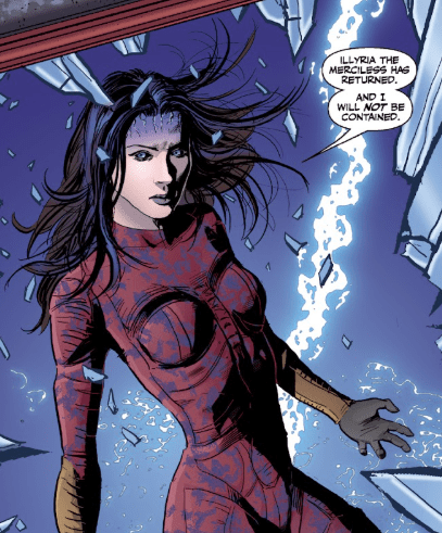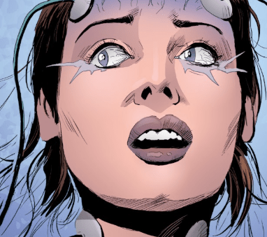 And with that, she simply punches a massive hole in the wall. She walks, calmly, outside, her eyes blue, her skin crackling with power. “I sense a presence. A powerful presence.“