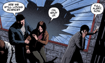 Inside, as Angel helps Faith to her feet, he can’t help teasing. “Are we still loving science?”