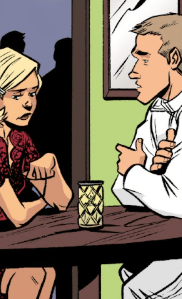 As she walks out of the door, she looks up at the night sky and sighs. Speaking aloud, to nobody in particular, Buffy doesn’t look back at the bar she’s just left. “Also, speed-dating sucks.”