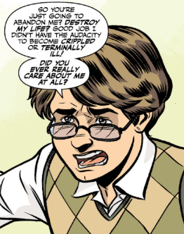 Giles loses his temper now, shouting louder. “So you’re just going to abandon me? Destroy my life? Good job I didn’t have the audacity to become crippled or terminally ill! Did you ever care about me at all?”