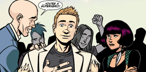With the demon gone, the party revellers all turn towards Andrew, stunned. Clive is the first to his side, throwing his arm around Andrew’s shoulders. “Dude, you saved us all! The potion worked – for the first time, ever! – Look at you, man, you turned into your perfect self… You’re a superhero!”