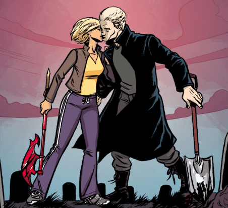 And, as the sun sinks in the distance, out over the bay, Buffy and Spike kiss, lost in each other, lost in passion.