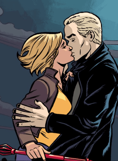 The kiss between Buffy Summers and Spike doesn’t stop, but does linger. When he finally pulls out of the embrace, Spike holds her in his arms. He’s slightly confused what brought it on. Buffy looks at him and then stammers back.