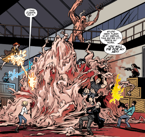 “Stupid meat. Flesh is my medium!” the Sculptor roars. “This entire city feeds my work. YOU WILL DIE FOR MY ART!”