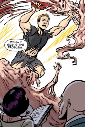 “Sorry. Still getting the hang of my powers. I can’t fly, but I can jump great distances. It’s all very Golden Age Superman.”