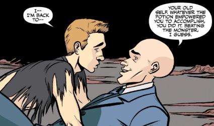 And suddenly, Andrew realises, the potion is gone and his body has reverted to pre-superhero proportions. He finds he can no longer support Clive in his arms, and tumbles on top of him.