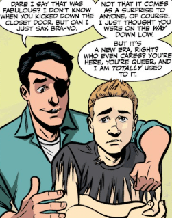 Xander appears behind him, wraps his arms around his friend. “Hey, sister, way to do it for yourself! Dare I say that was fabulous? I don’t know when you kicked down the closet door, but can I just say, BRAVO!”