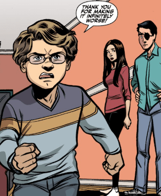 “THANK YOU FOR MAKING IT INFINITELY WORSE!” Giles yells at them both now, his temper rising and he storms off, heading for the door and the presumed safety of his own apartment.
