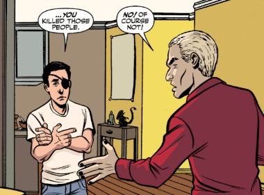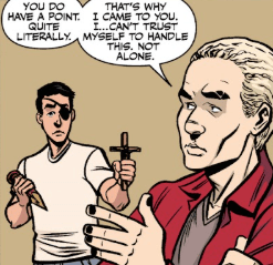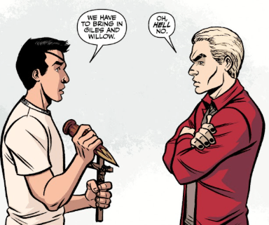 Five minutes later, after a rather hasty dose of exposition, Spike is standing in front of Xander – who has put a considerable distance between them. “So let me get this straight. You killed those people?”