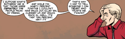 He reaches the window, and then begins to pace again, this time in the opposite direction. “I suppose what’s bothering me is that those were definitely the people from my dream. And while I’m ninety percent positive I couldn’t have snuck out, killed them, cleaned up and snuck back in… Well, it’s that ten percent, isn’t it? That’s why I had to tell someone I can trust. Who trusts me. Y’know?” He turns to Xander, scared, with fear in his eyes.