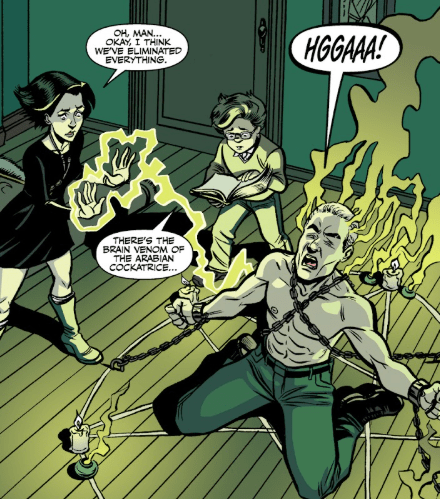The young boy turns to her. “There’s the brain venom of the Arabian cockatrice…” Willow raises her voice at him. “They’ve been extinct for centuries!”