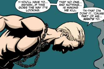He brings up the First, and how it controlled Spike through a trigger years ago. Spike didn’t know that was happening either. Spike nods. His friend has a point – and that’s why he doesn’t trust himself with this alone.