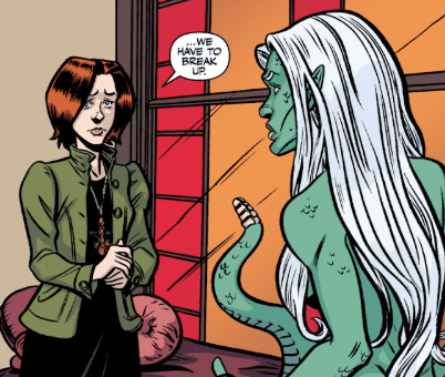 Willow breaks up with Aluwyn, who she started dating in Goddesses and Monsters.